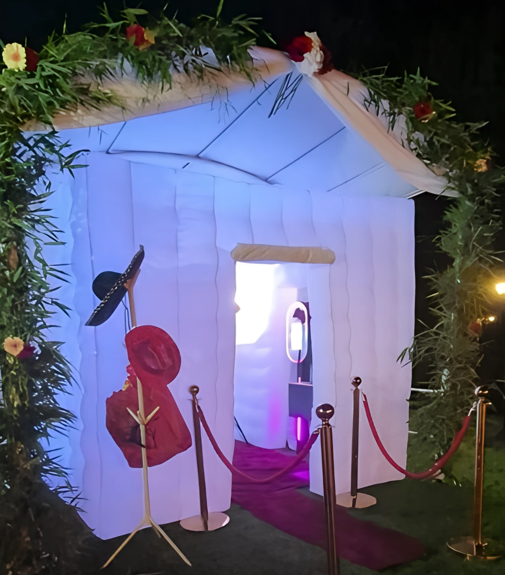 Dale un toque privado y llamativo a tu evento con nuestra Cabina Inflable combinada con el Tótem Fotográfico. Perfecta para fotos más exclusivas y divertidas.