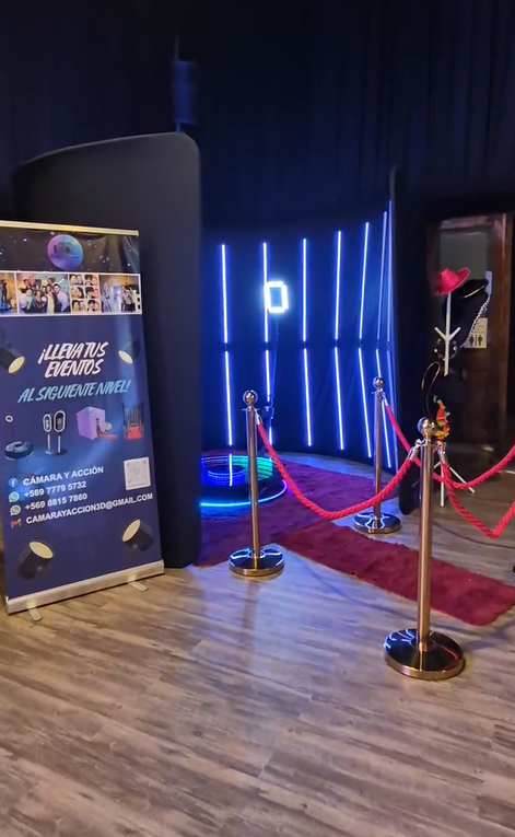Nuestra Cabina Inflable es el complemento perfecto para tus eventos. Con un tamaño de 2,30 x 2,30 metros, luces LED en su interior y una alfombra roja, ofrece un espacio privado y elegante para capturar momentos únicos. Incluye un tótem fotográfico, flash de estudio y una impresora DNP RX1HS para impresiones de alta calidad. ¡Ideal para darle un toque llamativo y exclusivo a tus celebraciones!